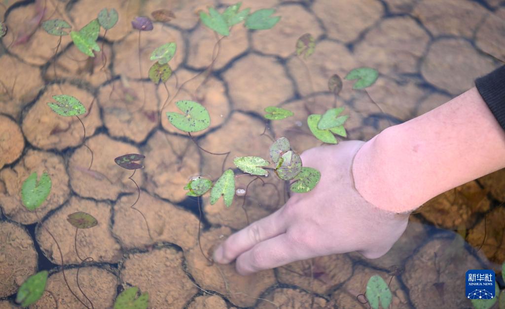 1月27日,在广州云溪植物园,工作人员查看睡莲幼苗长势。