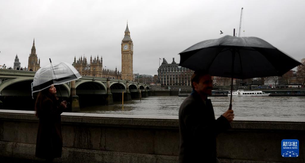 1月27日,人们撑伞走在英国伦敦大本钟附近。