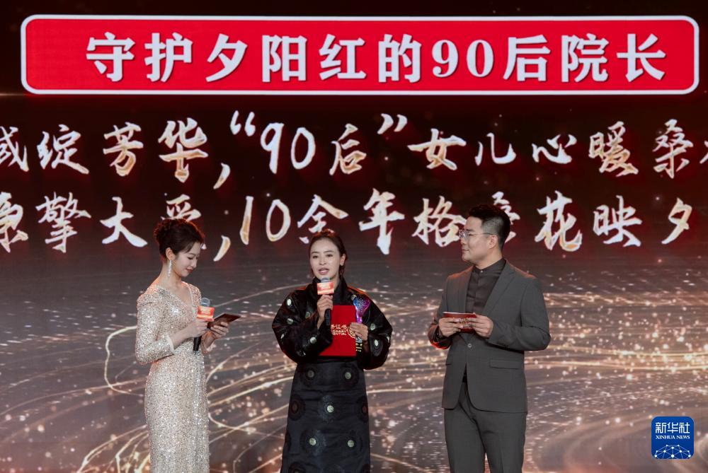 1月28日,由新华社主办的“中国网事·感动2025”公益盛典暨年度颁奖典礼在北京举行,活动揭晓“中国网事·感动2025”十大年度网络人物。这是“守护夕阳红的90后院长”格西王姆(中)出席颁奖典礼。新华社记者 李安 摄
