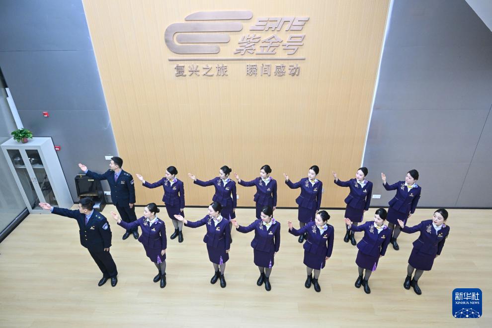 1月28日,中国铁路上海局集团有限公司南京客运段高铁二车队乘务人员进行业务演练。