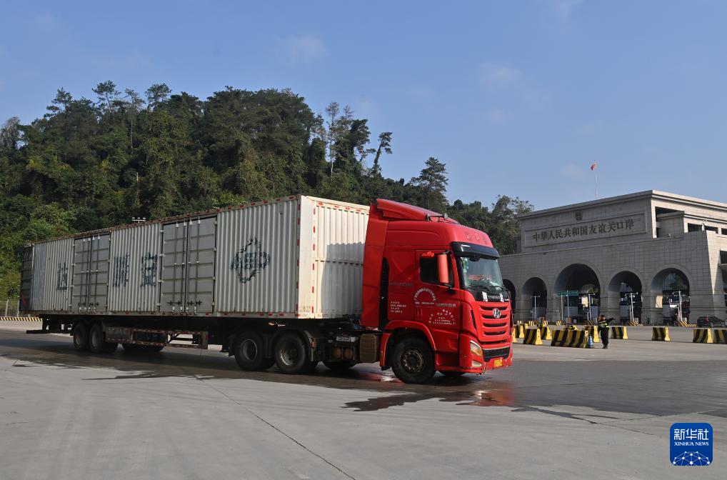 1月28日,一辆跨境货车准备进入位于广西凭祥的友谊关口岸。