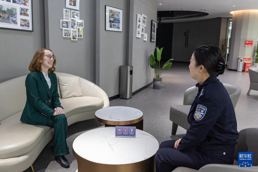 在重庆市公安局出入境管理局移民事务服务中心,民警为外籍人员解答相关永居政策(1月27日摄)。