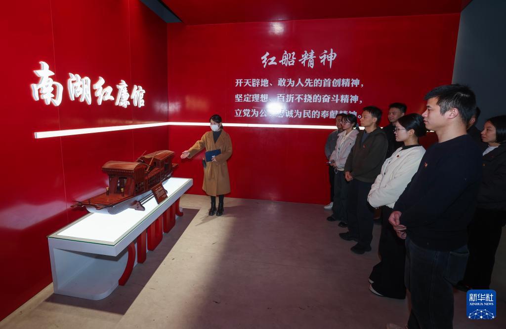 1月28日,嘉兴市南湖区东栅街道机关党委组织青年党员干部参观南湖红廉馆。
