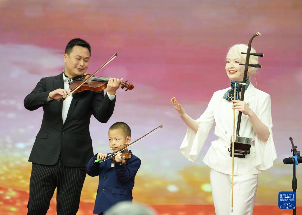 1月29日,中国残疾人艺术团演员俞彧(右)一家在中国残联2026年迎新春中外交流活动上表演。