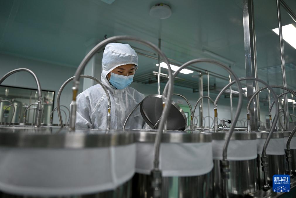 1月27日,在河南濮阳县的中国(濮阳)埃塞咖啡产业示范园冷萃车间,工作人员在查看咖啡冷萃程度。