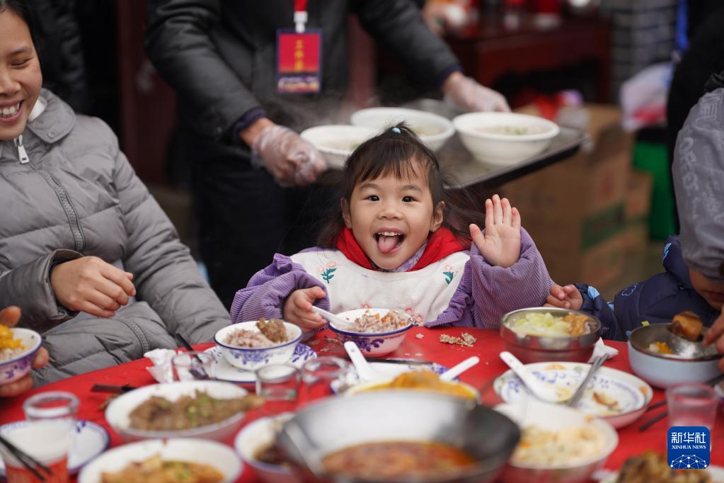 村民们参加神山村举办的“神山宴”活动(2月1日摄)。