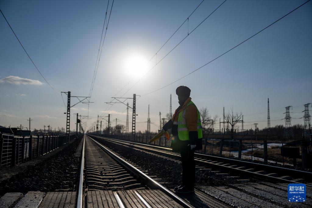 2月1日,工人张浩在列车经过后检查道口。