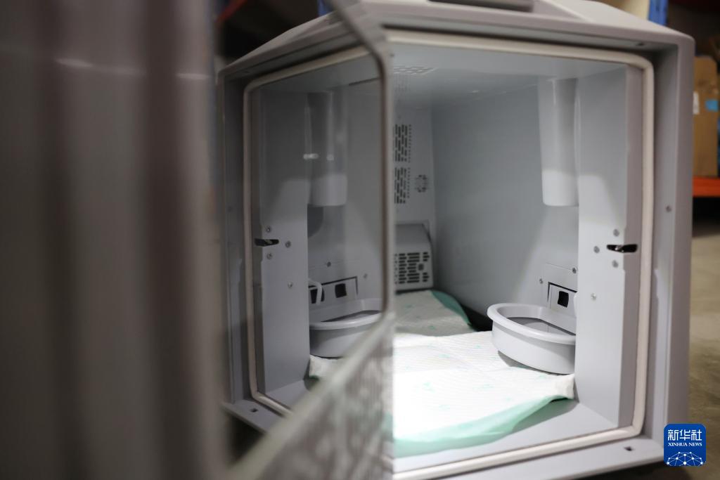 这是高铁宠物运输专用箱内部(2月1日摄)。