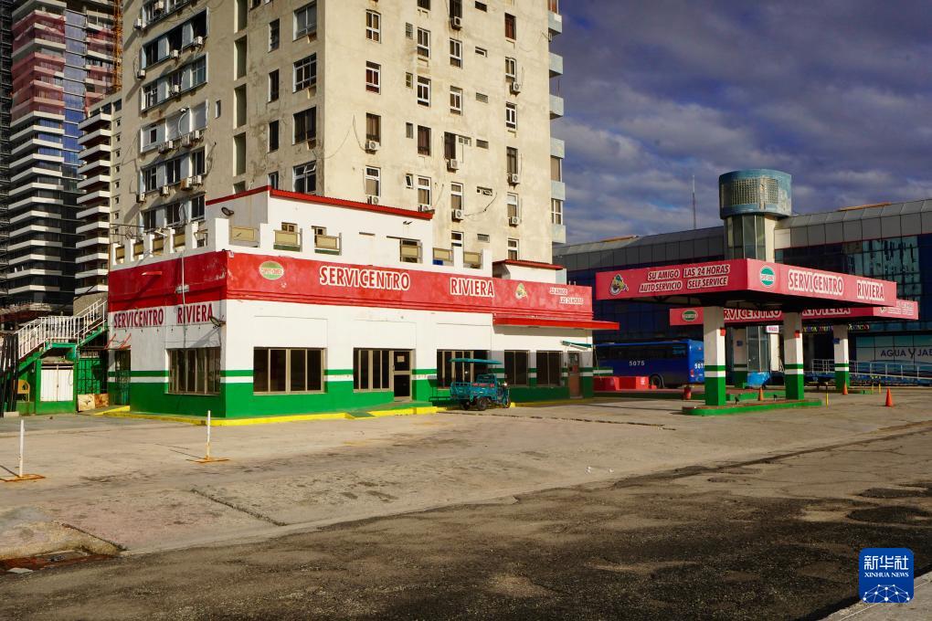 这是1月30日在古巴首都哈瓦那海滨大道旁拍摄的一处已停用加油站。
