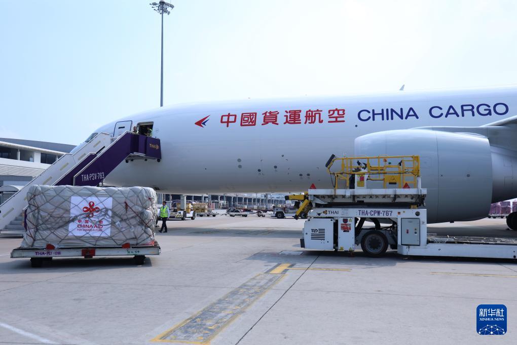 中国政府首批援泰人道主义物资30日运抵泰国首都曼谷的素万纳普机场。
