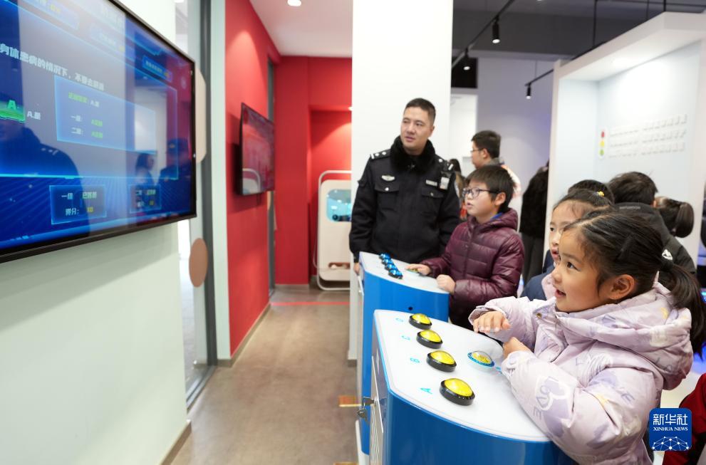 2月2日,在上海市普陀区长征镇办班点,寒托班的小学生参与VR安全模拟,了解地震知识。