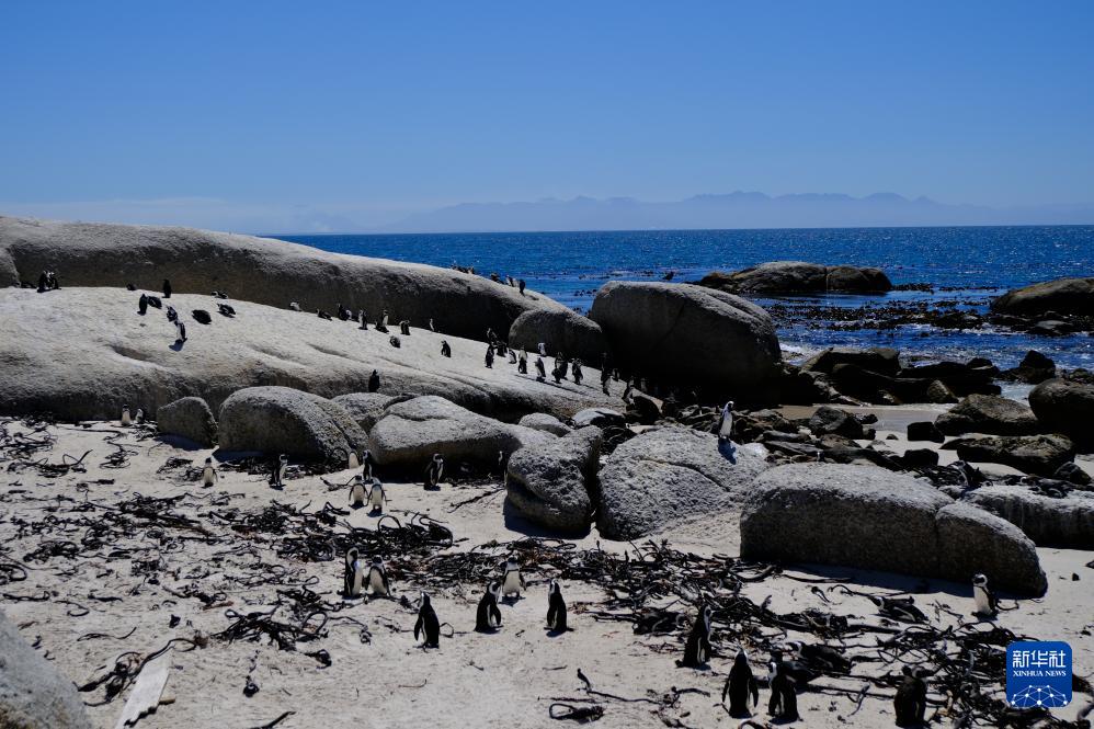 这是1月24日在南非开普敦西蒙镇海滩上拍摄的非洲企鹅。
