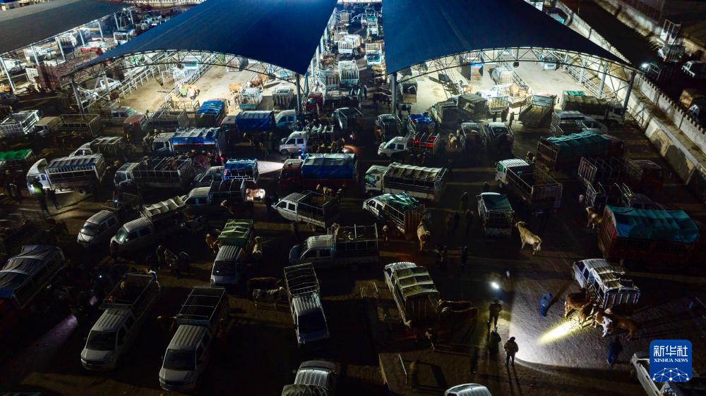 这是2月4日拍摄的宁夏固原市西吉县兴隆镇单家集活畜交易市场(无人机照片)。