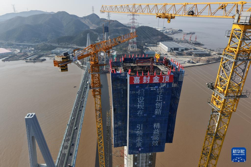 新春走基层丨甬舟铁路桃夭门公铁两用大桥6号主塔顺利封顶