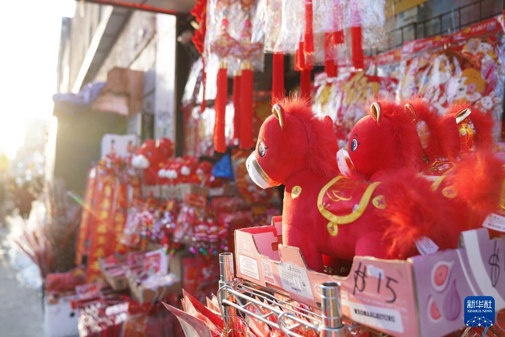 近日,在美国纽约皇后区法拉盛,春节主题装饰和商品在一些商场和街边商铺出现,增添了喜庆的节日氛围。