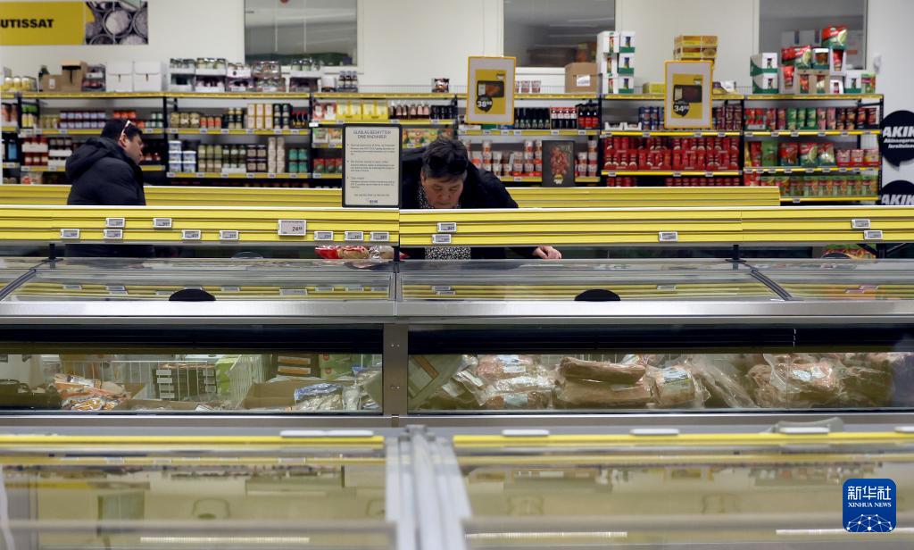 2月8日,在丹麦自治领地格陵兰岛首府努克,人们在一家超市内采购。