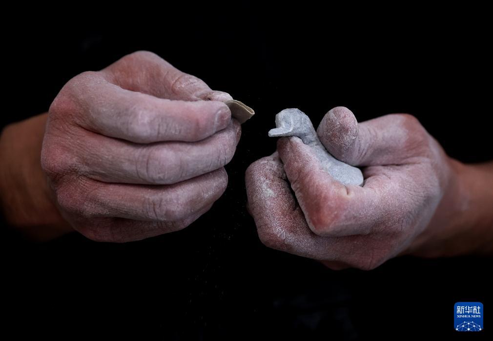 2月7日,在丹麦自治领地格陵兰岛首府努克的一处手工作坊,工匠用皂石制作艺术品。