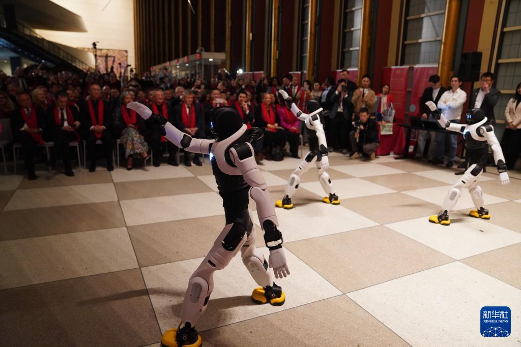 2月9日,“中国智造”机器人在联合国总部举行的“骏启新程”新春庆祝活动上表演舞蹈。