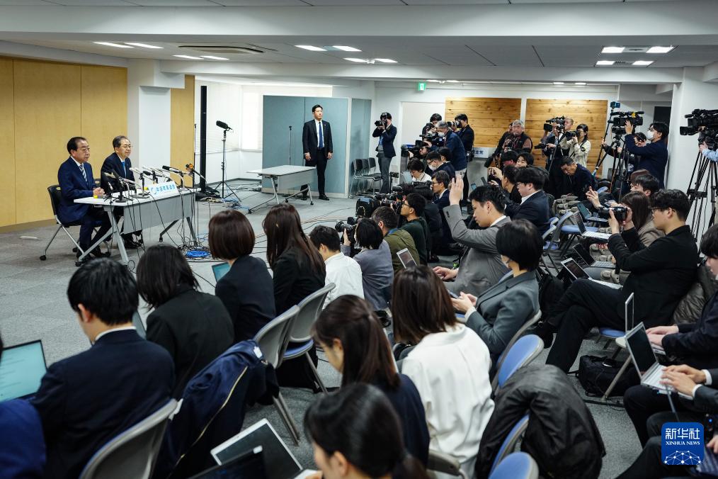 2月9日,在日本东京,日本“中道改革联合”共同代表野田佳彦(左)与齐藤铁夫出席记者会。