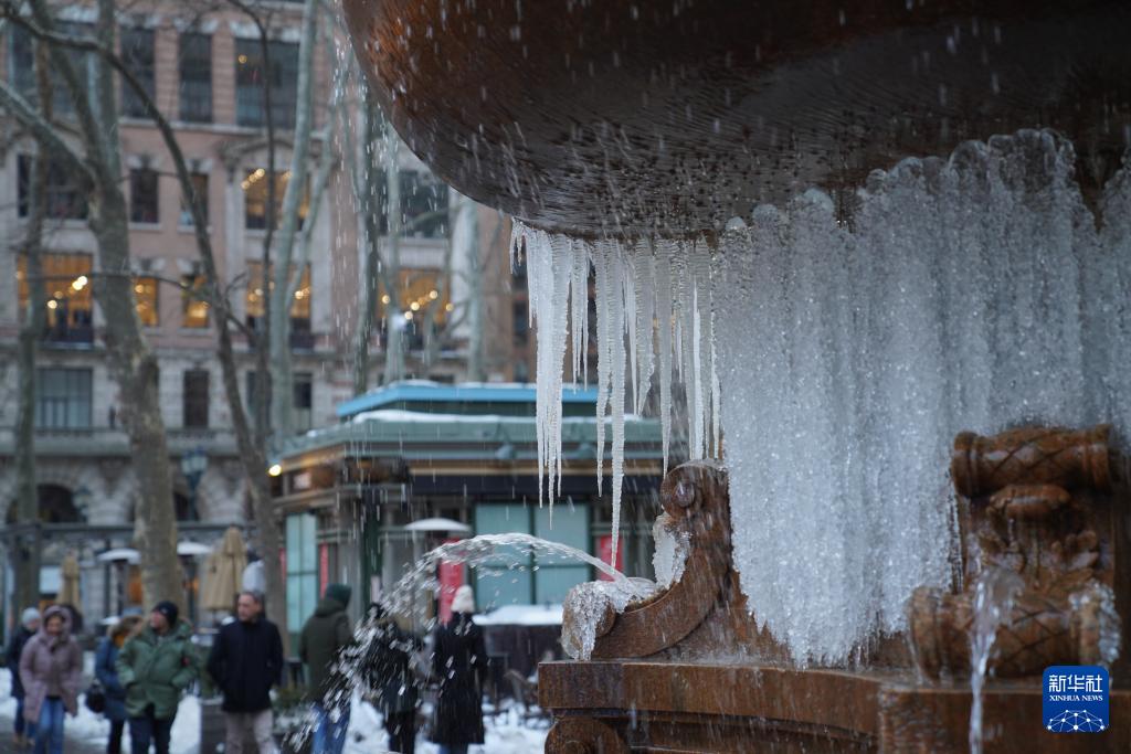 这是2月7日在美国纽约拍摄的结冰的喷泉。