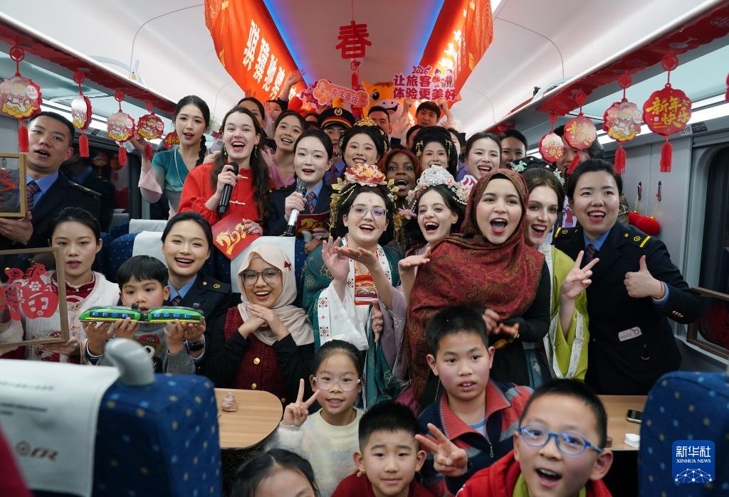 春节来临之际,一场特殊的“春晚”在南昌至北京丰台的D138次列车上举行。列车工作人员与外国留学生通过汉服展示、歌舞表演、书法互动等活动,让旅客在这个流动的大家庭里,感受各国文化的魅力与暖意融融的中国年味。