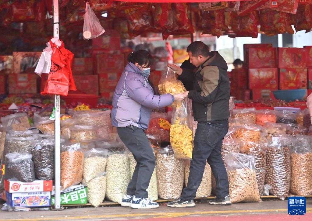 2月11日,在柳州市柳南区瑞龙路一家农产品批发市场,市民选购年货。