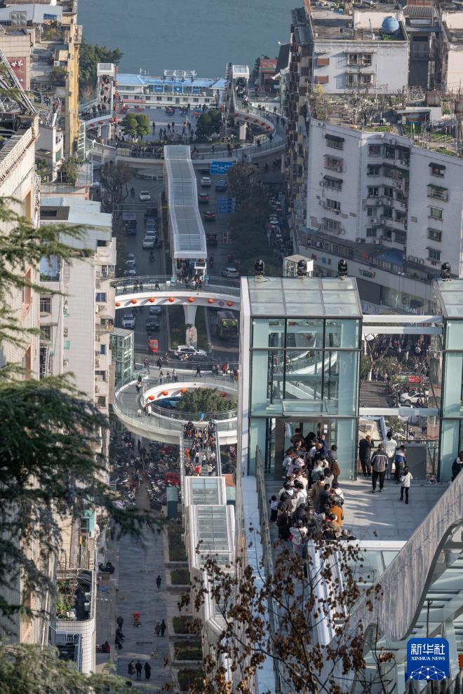 2月12日,重庆市巫山县“神女大扶梯”开启测试运行。扶梯串联政府、医院、学校、码头等城市功能节点,解决了沿线群众长期绕行、爬坡的出行难题。据介绍,扶梯总长905米,提升高度242米,包括电扶梯21部、垂梯8部、自动人行道4部、人行天桥2座和跨线通道2座等。