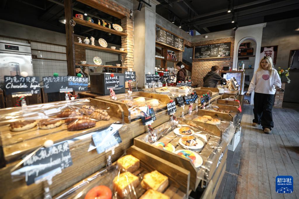 2月12日,顾客在沈阳粮仓文化创意产业园内选购烘焙商品。