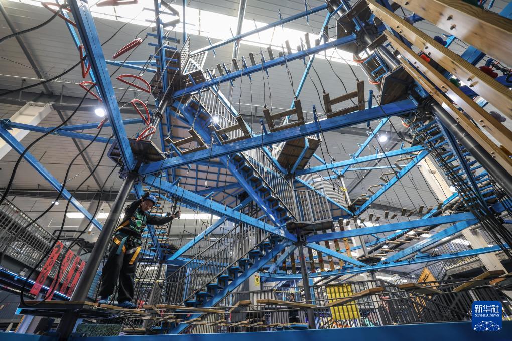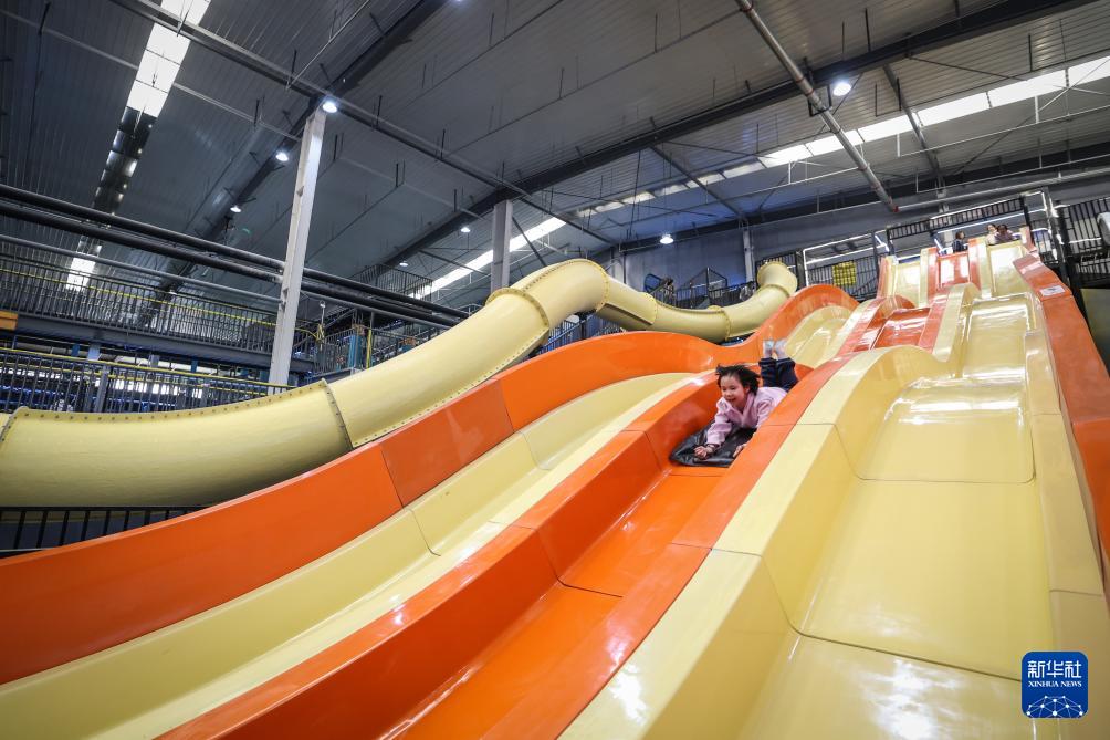 2月12日,游客在沈阳粮仓文化创意产业园内的“快乐专+”游乐场体验游乐项目。