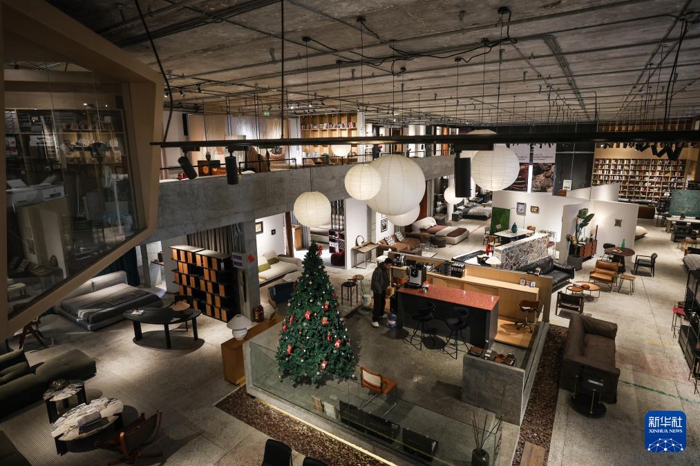 2月12日,顾客在沈阳粮仓文化创意产业园内的家具店内选购商品。