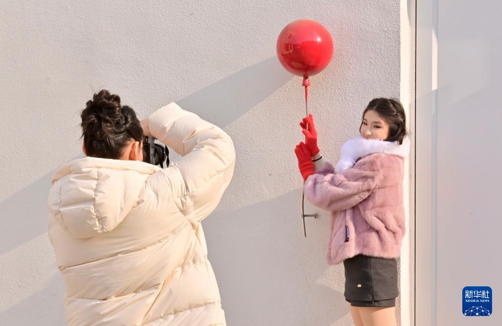 2月12日,游客在沈阳粮仓文化创意产业园拍照。