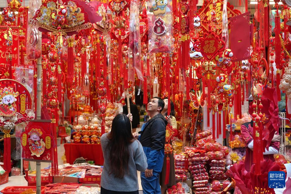 2月13日,顾客在越南首都河内的马市街选购新春饰品。
