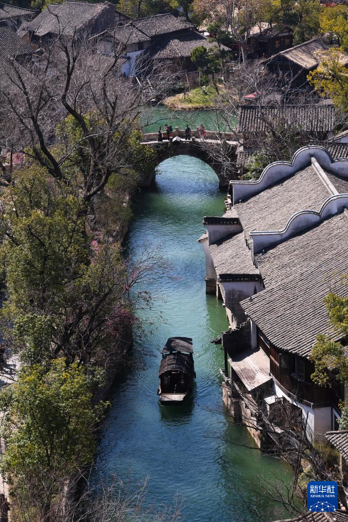 俯瞰春日暖阳中的濮院时尚古镇(2月20日摄)。
