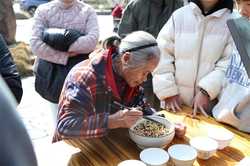 “五谷丰登”分拣豆类活动现场吸引老年人参加