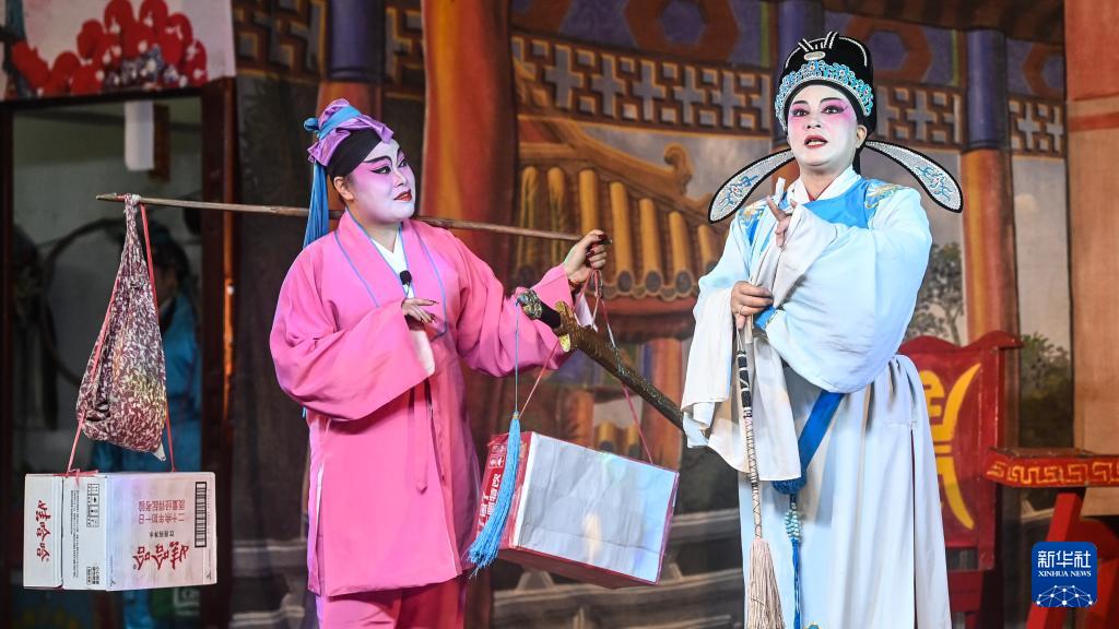 2月22日,在广西钦州市刘永福广场,民间艺人在表演采茶戏。