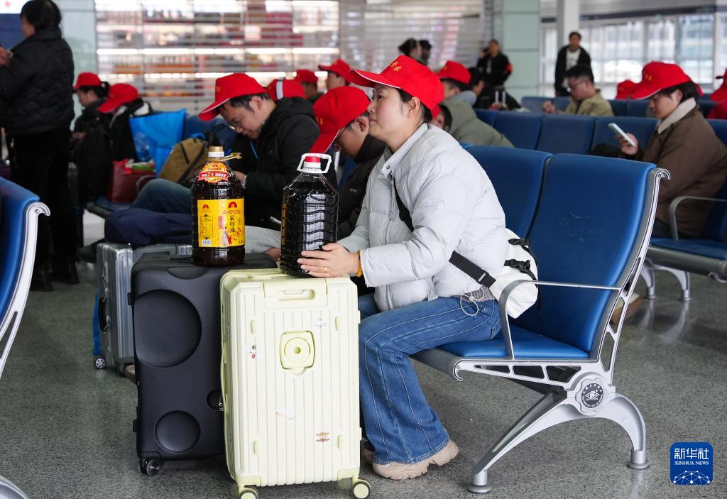 2月24日,来自西安市周至县的务工人员在西安北站候车。
