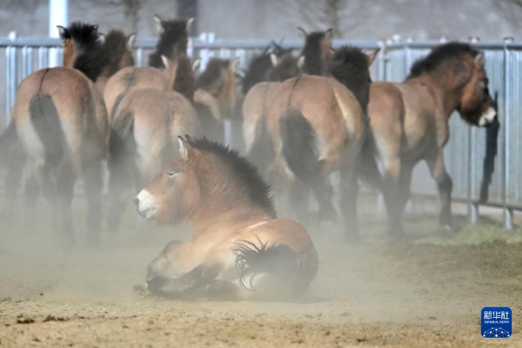 这是2月3日在甘肃濒危动物保护中心普氏野马饲养繁育基地拍摄的普氏野马。
