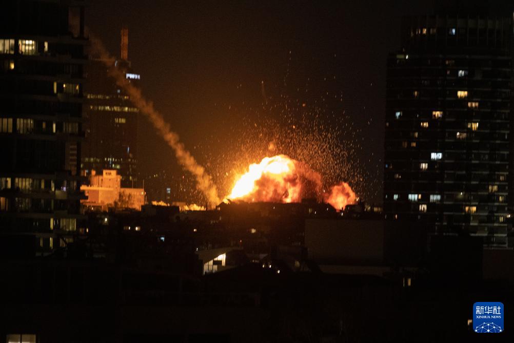2月28日晚,以色列特拉维夫市区传出巨大爆炸声,有建筑物冒出火光。