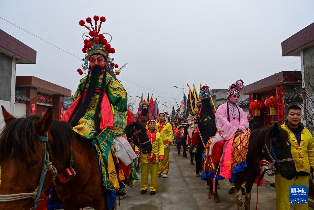3月2日,陇县黄花峪村社火队在游演途中。