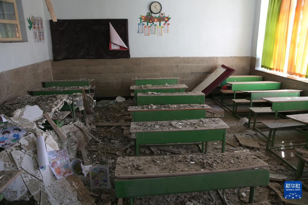 3月3日,在伊朗德黑兰市中心的沙希德·马哈拉提学校,教室内一片瓦砾。