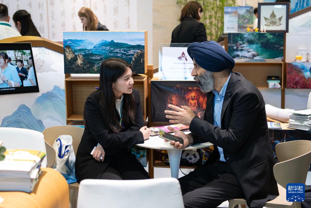 3月3日,在德国首都柏林,人们在2026柏林国际旅游交易会中国展区洽谈。