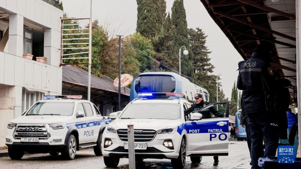3月1日,在阿塞拜疆南部阿斯塔拉口岸,警方加强警力保障撤离人员有序抵达。
