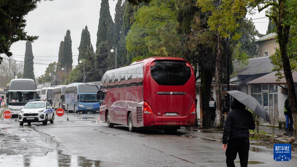 3月1日,在阿塞拜疆南部阿斯塔拉口岸外,前往巴库的免费大巴准备出发。