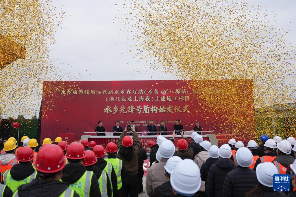 3月4日拍摄的水乡旅游线城际铁路(浙江段及上海段)“水乡先锋号”盾构始发仪式。