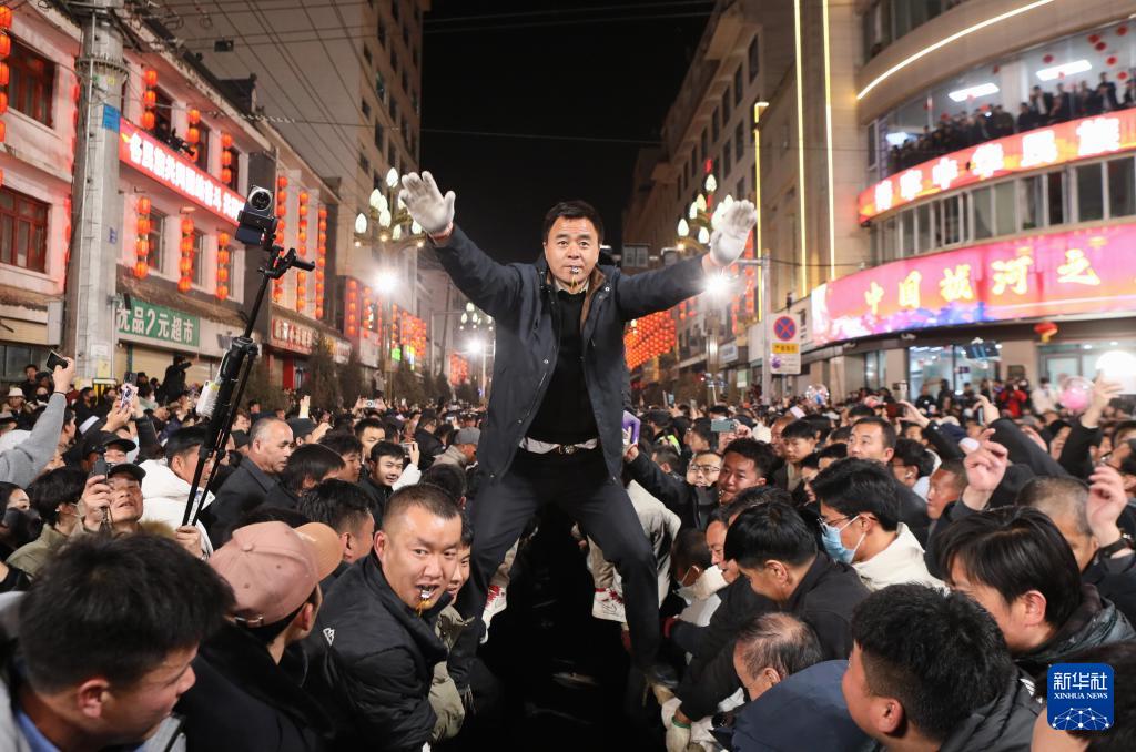 3月2日,在临潭县“万人扯绳”民俗活动现场,参赛人员在指挥拔河。