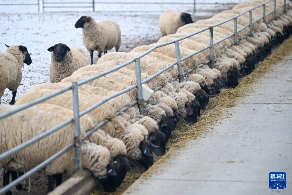 这是在位于新疆昌吉回族自治州的日发新西域玛纳斯牧业有限公司拍摄的萨福克羊(3月3日摄)。