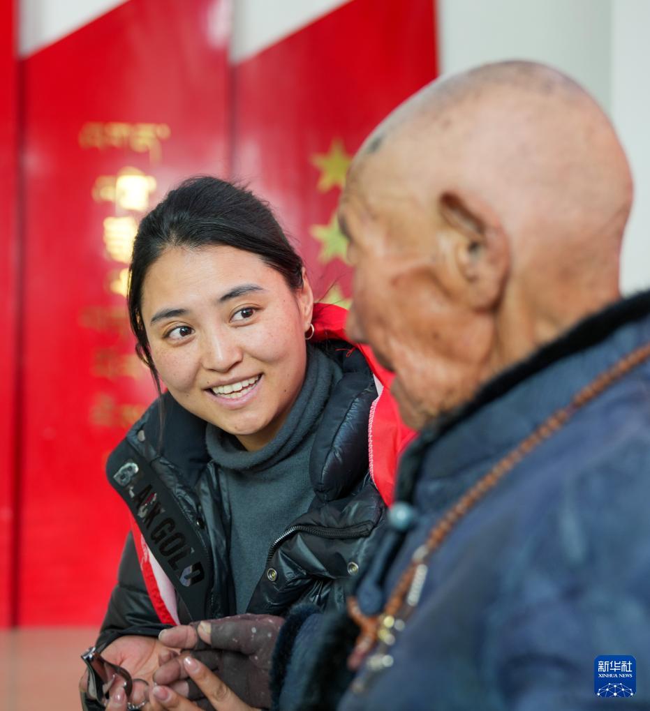 3月5日,拉萨纳金街道工作人员在为辖区内的孤寡老人剪指甲。
