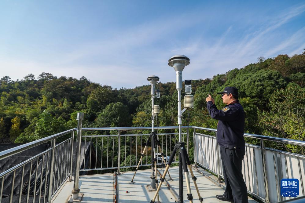 浙江省湖州市吴兴区道场乡综合行政执法中队工作人员查看道场乡空气自动监测站点,确保站点安全稳定运行(2024年10月29日摄)。