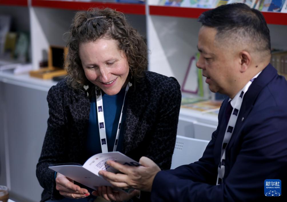 3月10日,人们在英国伦敦书展中国展区洽谈。新华社记者 李颖 摄