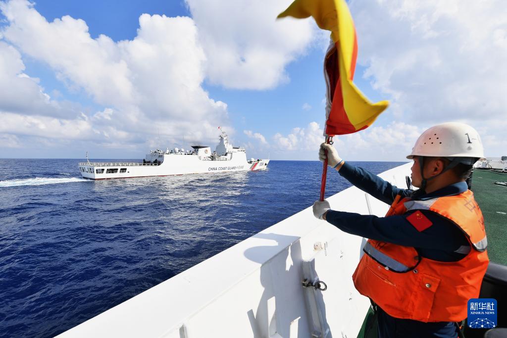 茫茫南海,壮阔浩渺,深蓝色的海水拍打着海警舰艇。连日来,海警三都舰编队在我国南海某海域执行巡航值守任务,维护祖国海洋权益。中国海警执法员开展常态巡逻执法、组织日常训练、管理服务过往船舶等工作。